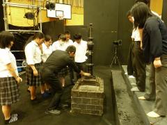 公演が進むに連れ、生徒や保護者の皆さんが集中して鑑賞している姿が見られました。公演後、生徒代表から「このような物語があることを初めて知り、人と人とのつながりの大切さを感じました」とのお礼の挨拶があり、演劇を通じて学ぶことが多かったようです。終演後は舞台見学に飛び入り参加する生徒も多く見られ、舞台装置、照明、音響について興味津々に見聞きしていました。