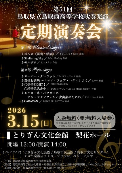第51回鳥取県立鳥取西高等学校吹奏楽部定期演奏会