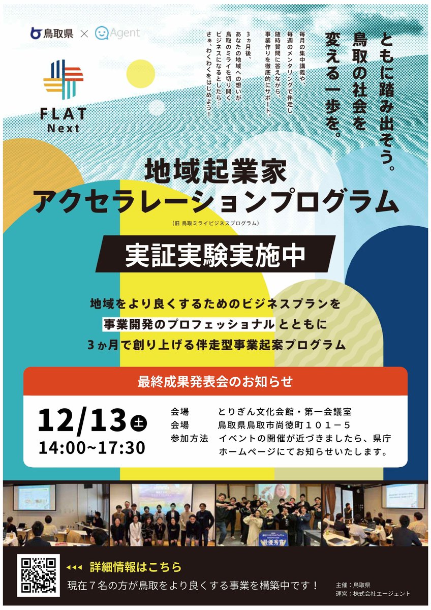 鳥取地域起業家アクセラレーションプログラム『FLAT Next』 ビジネスプランコンテスト