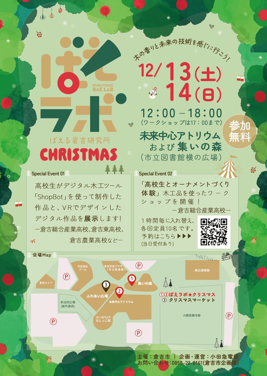 | チケット情報 | 倉吉総合産業高校による木工品ワークショップ「高校生とオーナメントづくり体験」を開催します。参加される方は以下URLから予約いただけます。 |