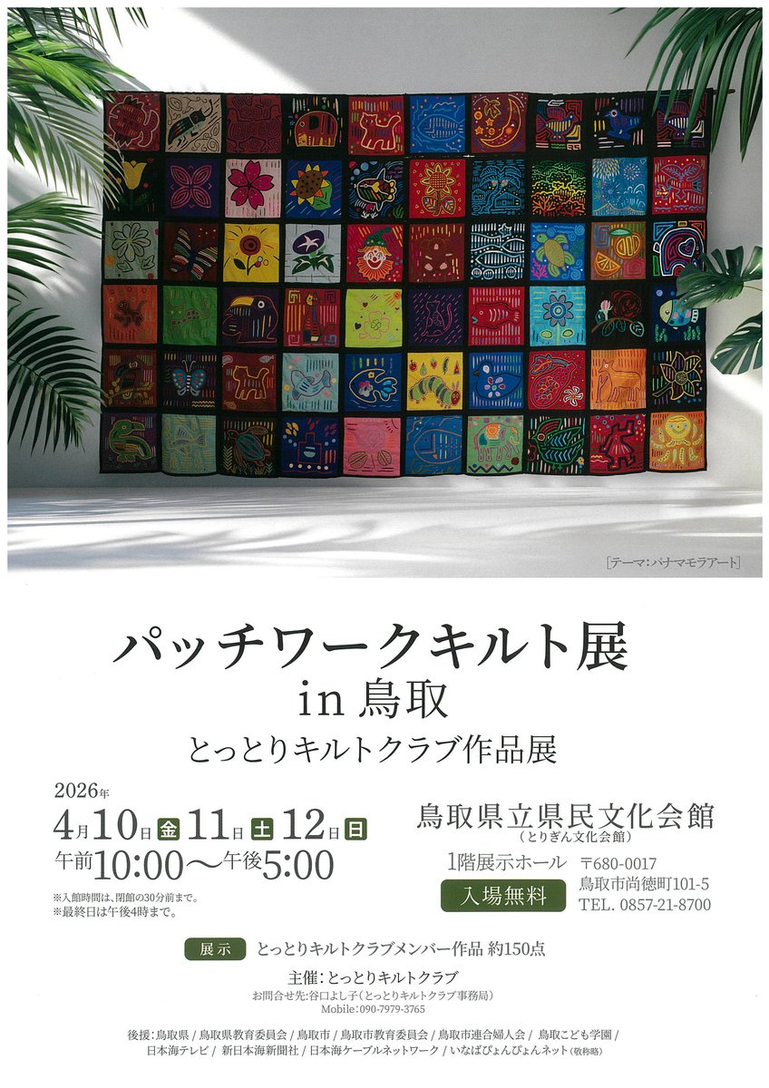 とっとりキルトクラブ 090-7979-3765 (谷口)4月10日(金)~4月12日(日)