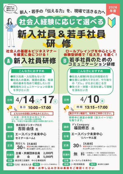 🅰️「新入社員研修」&🅱️「若手社員のためのコミュニケーション研修」