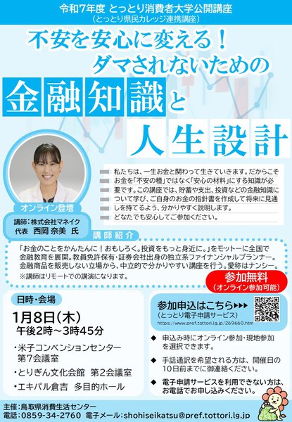 令和7年度とっとり消費者大学公開講座「不安を安心に変える!ダマされないための金融知識と人生設計」